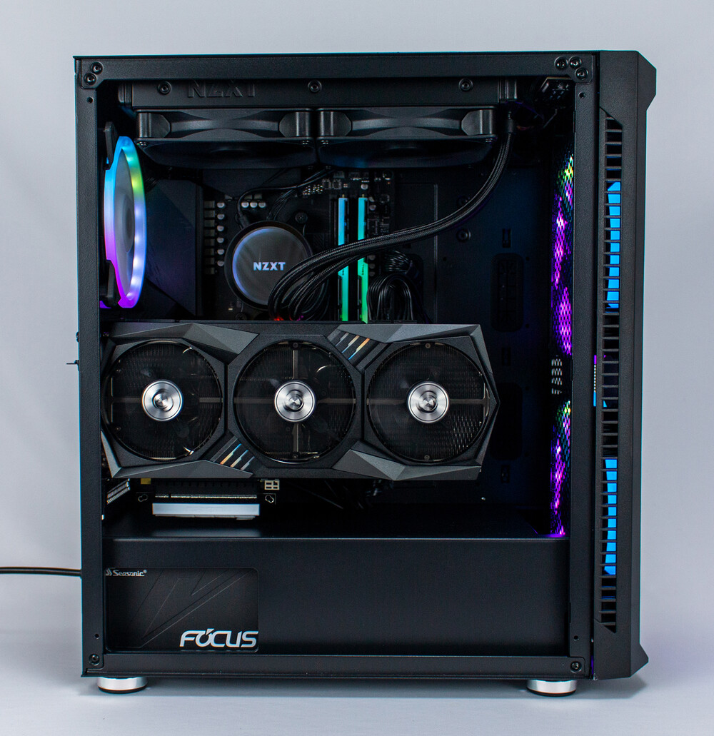 라이저 케이블을 PCIe 4.0 인터페이스에 맞는 부품으로 구성하여 본체를 PCIe 4.0으로 완벽하게 구성하였으며 5800x의 높은 발열을 쿨링하기 위해 NZXT x63으로 빌드한 구성입니다.