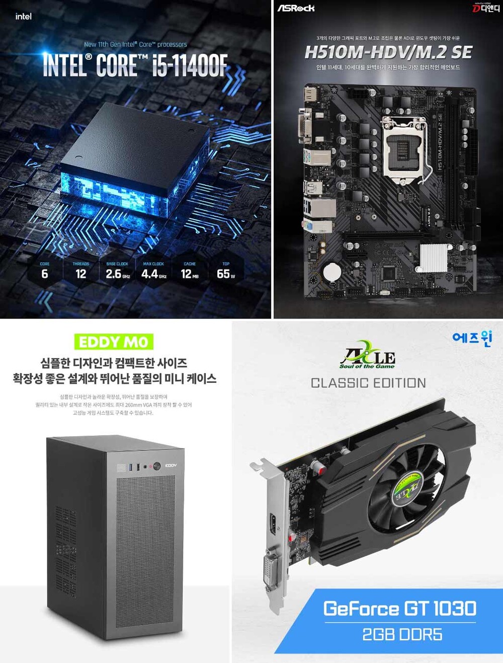 인텔 i5 11세대 11400F / 액슬 GT 1030 2GB / 삼성전자 DDR4-3200 8g x 2ea / EDDY M0 블랙